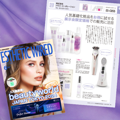 プロ向け専門情報紙『エステティック通信』2024年6月号(美容経済新聞社 発行)のBeauty World Japan Tokyo 2024特集に掲載